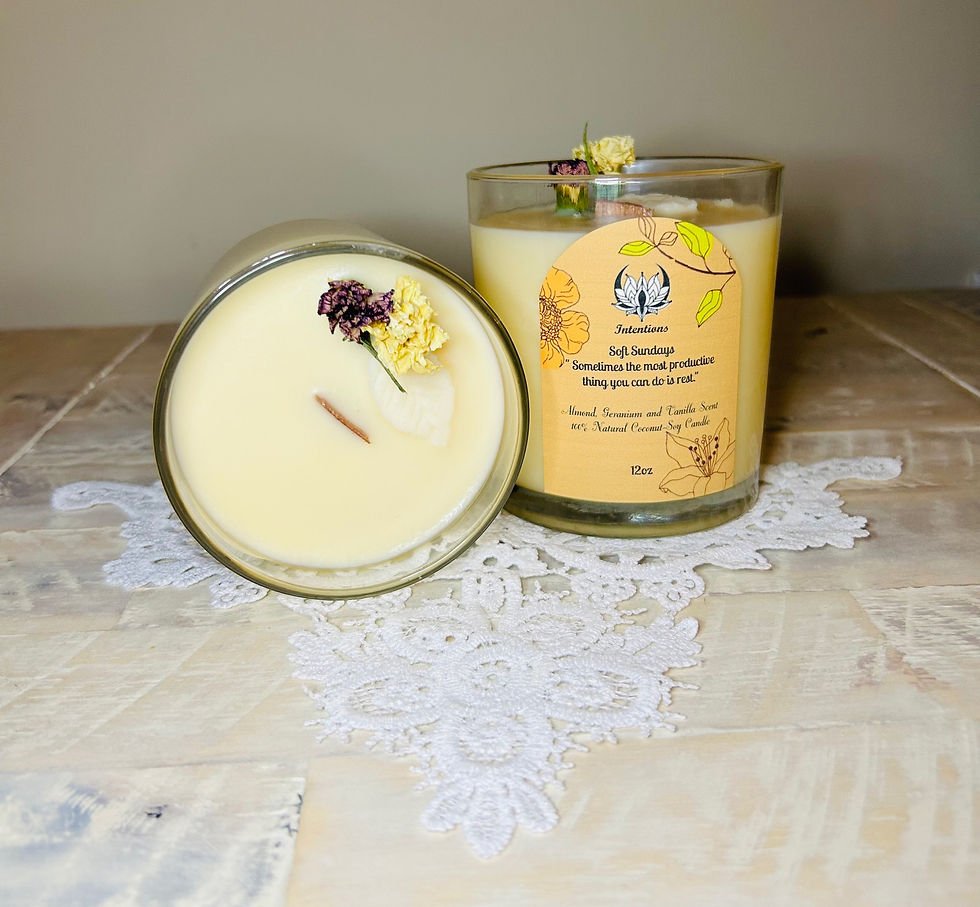 Intentions is passionate about handcrafting clean burning, biodegradable and natural Coconut-Soy wax candles. All of the candles are non-toxic, and are scented with paraben-free and phthalate-free fragrances derived from pure plant based essential oils.